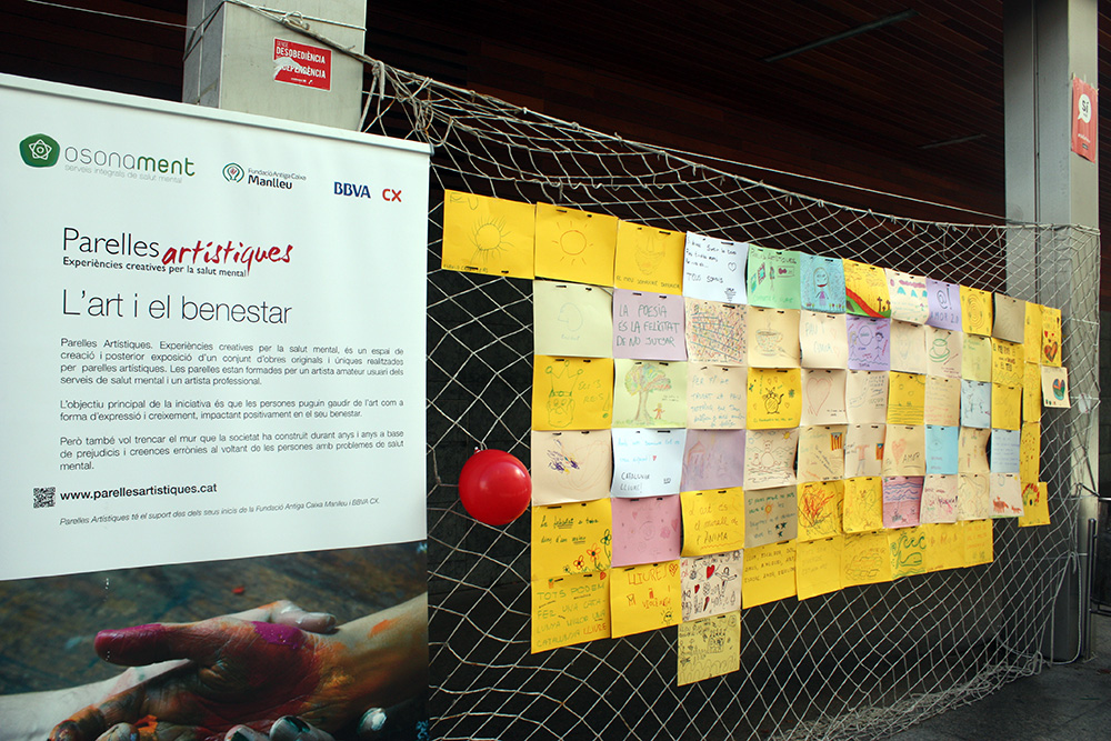 El Portal de la Rambla de Vic va ser l’escenari aquest dissabte de la festa de clausura de l’onzena edició de Parelles Artístiques a Osona, que va comptar amb la col·laboració dels comerços d’aquest carrer associats a Vic Comerç. L’activitat principal va ser la creació d’un mural per part de les persones que s’acostaven a la festa, les quals havien de transmetre a través de dibuixos o frases allò que els aporta benestar emocional. Hi van participar prop de 80 persones. També es va fer una xocolatada, hi va haver música en directe i un taller a càrrec dels Sagals d’Osona. En els aparadors dels comerços associats a Vic Comerç, s’hi podien observar les obres d’aquesta edició del projecte. L’acte va finalitzar amb un dinar amb els artistes que han participat en aquesta onzena edició.
