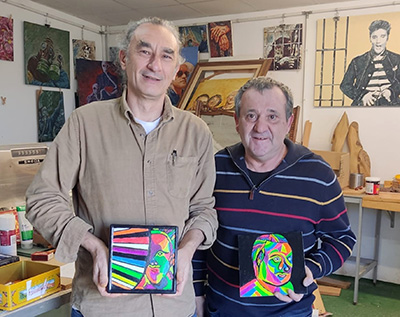 Joan pinta abanicos con pintura fosforescente, Jaquete pinta retratos,
